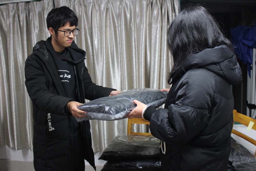 活动前期,学院领导班子高度重视此项活动,调查学生需求,反复商讨采购方案。每份物资都附有学工办辅导员亲手撰写的暖心祝福,在提供物资支持的同时给予人文关怀。