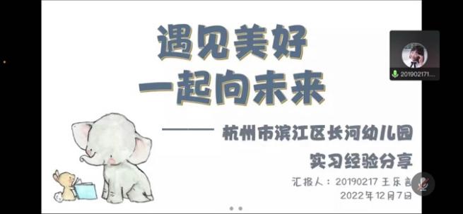 2022年12月7日晚上,随着2019级学前教育跨级实习经验交流会的结束,本学期实习经验交流画上了圆满的句号。