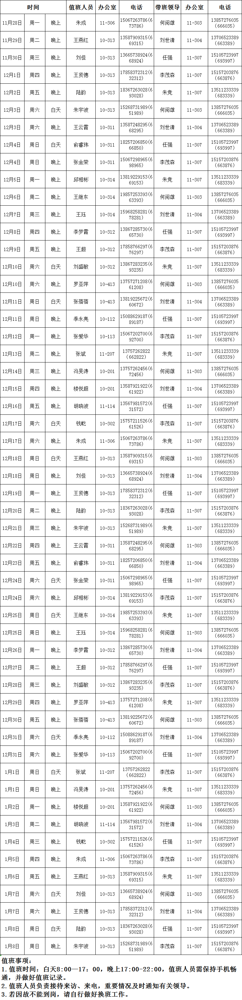 js3845金沙线路值班安排表 (11月28日-1月8日)