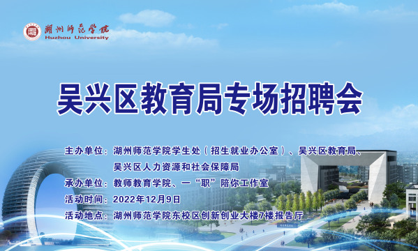 为贯彻落实党的二十大“就业优先战略”,深入推进“六稳六保”工作,服务湖州地方教育事业发展,12月9日,我院于东校区创新创业大楼7楼报告厅、中校区10幢5楼举办吴兴区教育局专场招聘会,此次招聘会面向js3845金沙线路全体2023届毕业生,招聘岗位包含各科中小学教师。