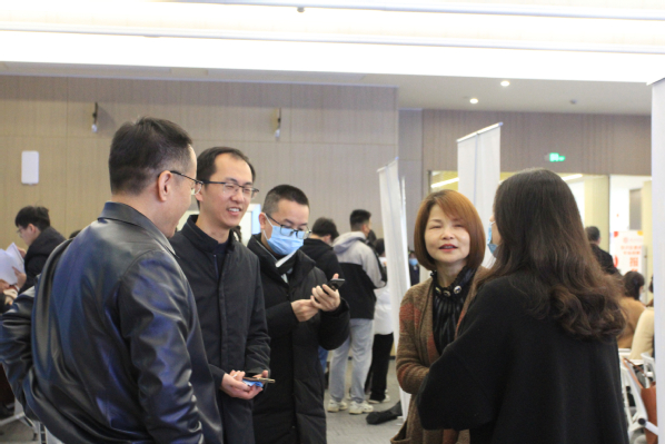学院党委书记何阅雄、校党委学工部副部长郭胜、学院党委副书记朱竞到会指导,并与吴兴区教育局党委书记、局长范慧敏,吴兴区人力资源和社会保障局党组书记、局长许丽萍,吴兴区教育局副局长陈明强,吴兴区人力资源和社会保障局副局长陆培红一行就本次招聘会和师范生就业情况进行交流沟通。