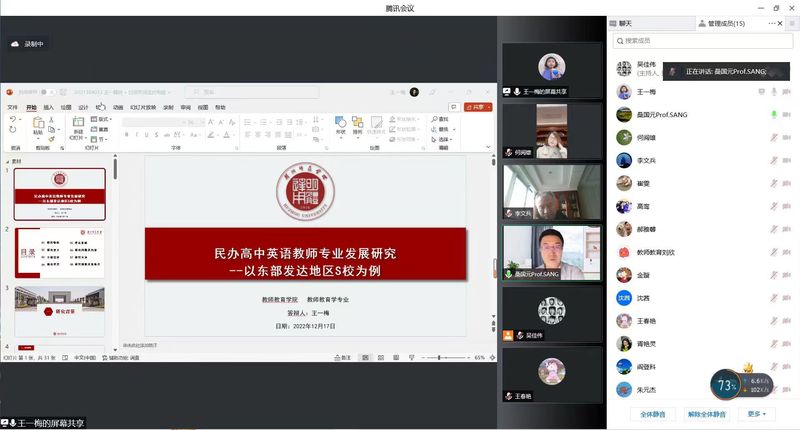 学院高度重视研究生开题工作,在暑期就公布了《js3845金沙线路关于做好2021级研究生开题工作的通知》,对2021级研究生开题基本原则、范围、预开题进度做了详细部署, 10月下发《js3845金沙线路2021级研究生开题工作方案》,根据学校疫情防控要求,对预开题和开题实施方案进一步调整和细化。在正式开题前,各二级学位点已完成预开题工作。本轮开题,分别邀请了浙江大学、北京师范大学、华东师范大学、西南大学、南京师范大学、浙江师范大学、杭州师范大学、安徽师范大学、宁波大学的知名教授担任组长,同时教育硕士各开题答辩组还邀请了来自基础教育学校的实践导师参加。按照疫情防控要求,本轮开题采用线上线下结合的方式进行,部分2022级研究生旁听了开题汇报。