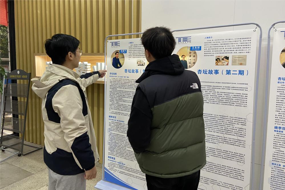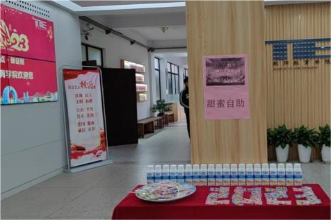 文化浸润,启智润心。学院一楼大厅设置“甜蜜自助”台,为学生们发放甜蜜开学礼,祝福同学们在新的一学期里有所成长与收获;学院一楼排列着“杏坛故事”系列宣传海报,图文并茂讲述优秀校友们在教育一线的故事,旨在培育校友文化,树立育人榜样,让广大学生及家长感受到学院“崇仁精业”的育人文化。