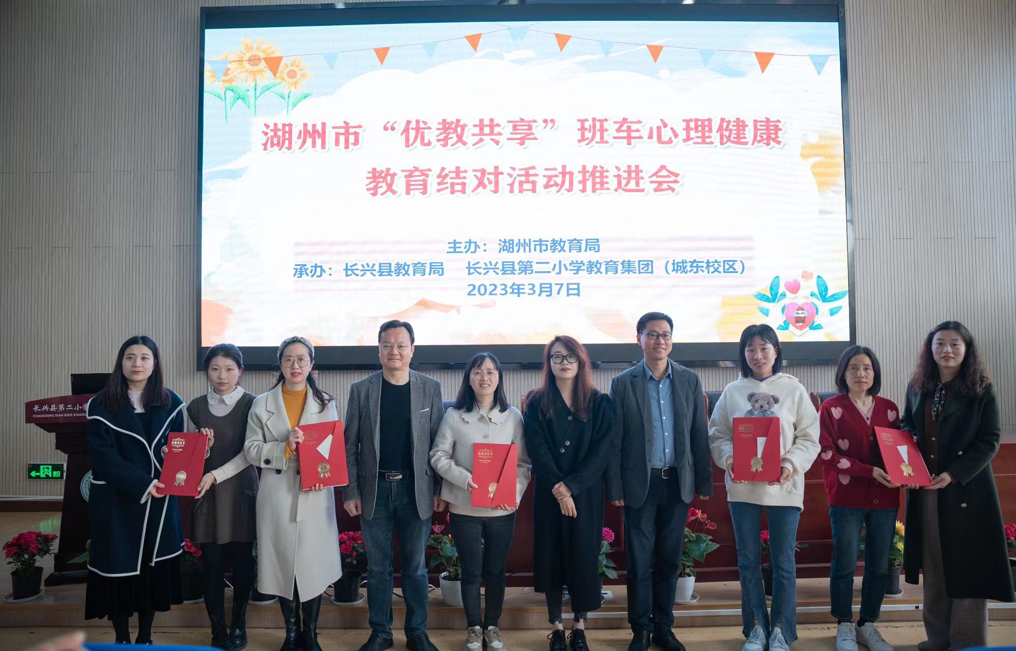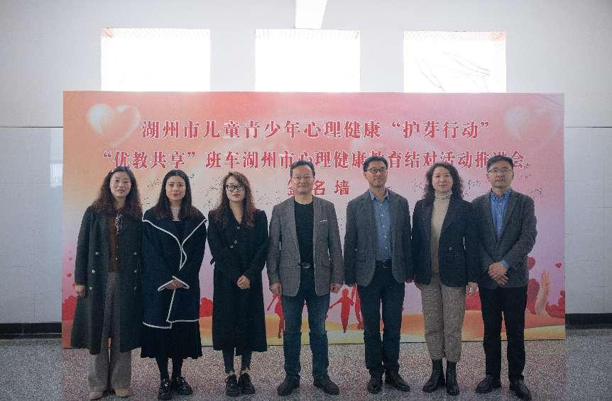 3月7日上午,湖州市儿童青少年心理健康“护芽行动”暨“优教共享”班车湖州市心理健康教育结对活动推进会在湖州市儿童青少年心理健康“护芽行动”暨“优教共享”班车心理健康结对活动在长兴县第二小学城东校区举行。湖州市教育局党委委员、副局长朱建伟、湖州市37度心理负责人费为群、湖州市教育局基础教育处处长刘莉、芽芽慈善基金会秘书长郑丽丽,我校儿童青少年心理健康研究中心负责人刘盛敏及各区县的心理教师参加会议。