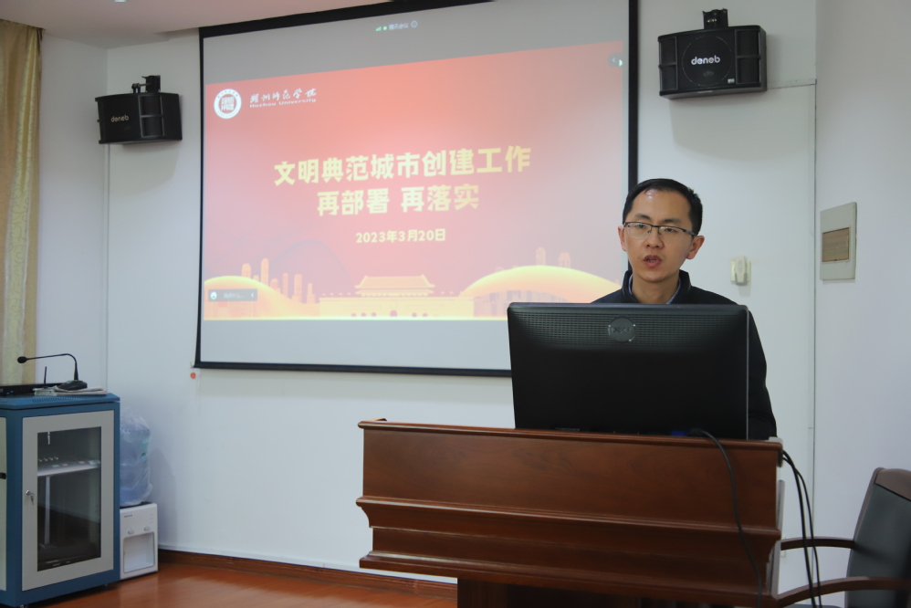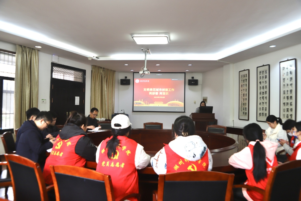 为给全院师生营造一个安全有序、文明和谐、整洁舒适的校园环境,助力文明典范城市创建工作,3月20日,我院召开文明典范城市创建工作部署会,对学校要求再部署、再强化、再落实。会议采取线上线下相结合的方式同时召开,学院党委副书记朱竞、全体辅导员及40余名学生志愿者参会。