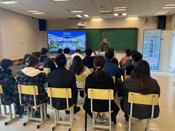 招聘会伊始,安吉技师学院人事科科长杜军对该校的校园概况、办学理念、招聘岗位、福利待遇、人才政策等内容进行宣讲并热烈欢迎各位毕业生能成功加入安吉技师学院。