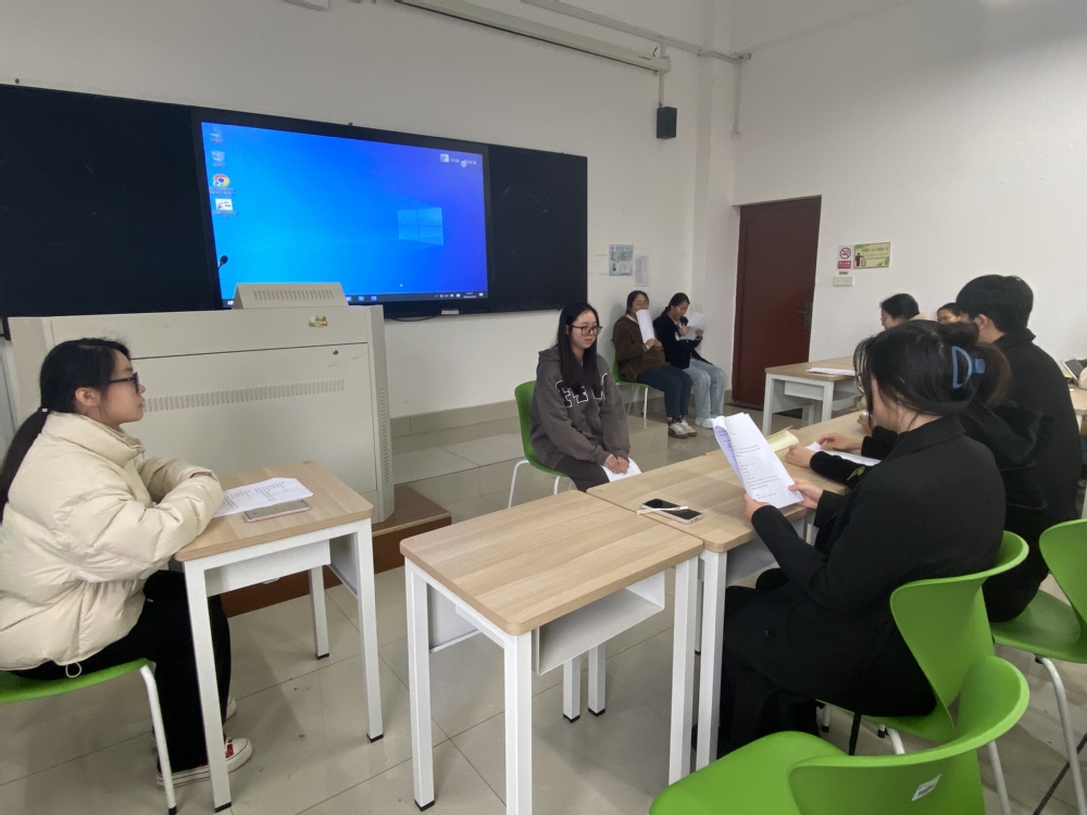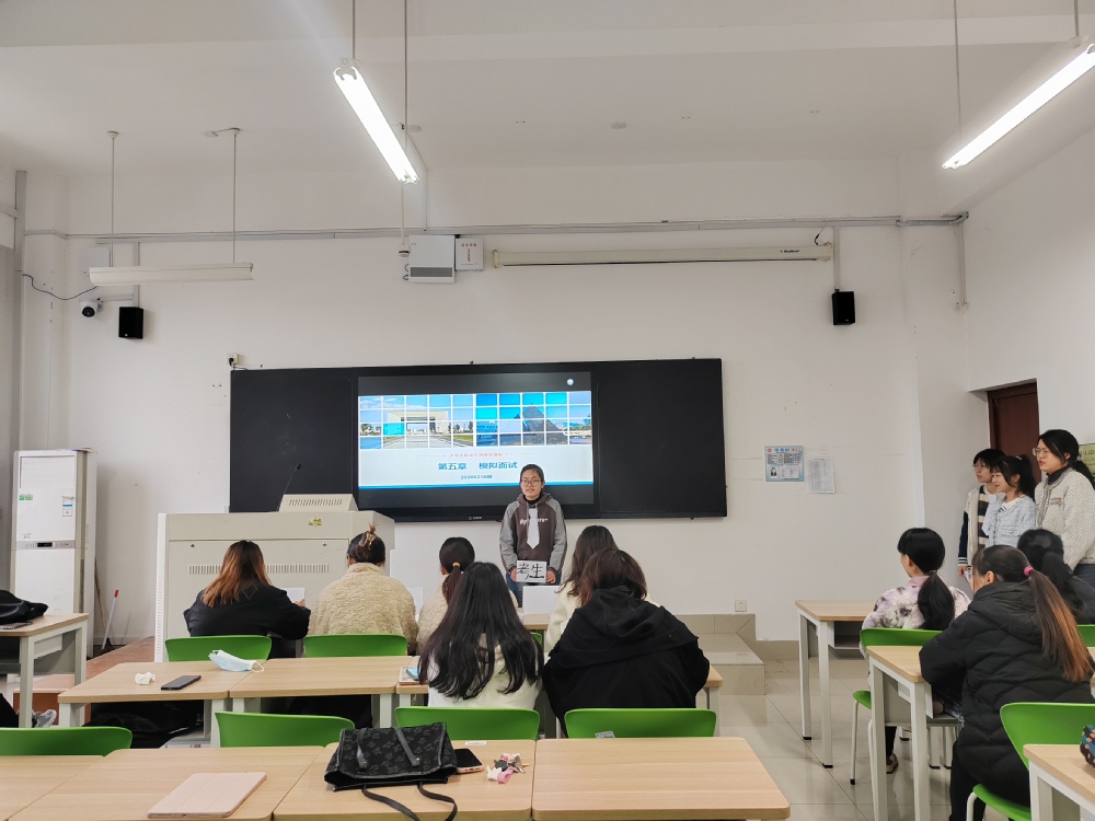 学工办根据学生就业意向认真设置面试题目,创设面试环境,设计面试流程,力求最大程度还原面试现场情景。此次模拟面试严格按照结构化面试流程,各班学生自行组成8人左右临时小队,分别扮演“面试官”“计时员”“求职者”等角色,“求职者”们分别从基本信息、校园经历、社会实践经历、对教师岗位的理解等方面进行自我介绍,再根据“面试官”所给定的问题发表自己的观点。活动现场氛围严肃认真,同学们显得有些紧张,但总体表现可圈可点。模拟面试结束后,首先由学生互相对彼此的表现进行点评,再由辅导员对本次模拟面试体验活动予以总结。针对同学们的表现,辅导员老师们为各位同学优化求职简历、改进面试表现总结了六条改进措施:一是要准备充分,认真对待面试环节;二是回答问题前要认真思考,切忌信口开河;三是声音和语速要适中;四是是自我介绍要突出自我优点,不必过于谦虚;五是要注重仪表仪态;六是站位要高、视野要宽。