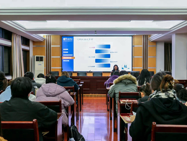 活动伊始,学院负责就业部门向李老师颁发“就业导师”证书,表彰博越教育和李老师对我院学生就业工作的贡献。随后,李老师首先展示了我院2022届毕业生就业质量报告,说明教育行业流向上升的趋势,并从就业大环境、教师招聘形式、备考复习、备考分享等方面,生动形象地向在场学生介绍招聘考试提前批、统考和补招等形式,帮助在校生认识提前批教师招聘的重要性。