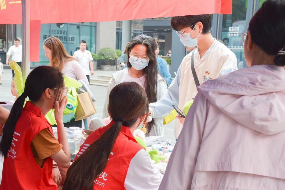 义卖现场人头攒动,热闹非凡,石膏娃娃、书法团扇、手写书签等自制产品获得不少人的喜爱,图书、摆件、书包、玩偶等旧物也基本被转卖。市民纷纷表示,在自制精致的手工产品的同时,还能通过这样的慈善活动表达自己的爱心,帮助其他需要帮助的群体,是一件非常有意义的事情。有心便有爱,“5·20”是个特别的日子,活动现场的广大市民们都深受感染,积极参与捐赠,为学困儿童送去关怀,以点滴小爱汇聚大爱。本次活动是青年志愿者们与社会“爱”的联结,精彩诠释了生活中每一幕充满爱的时刻,同时也展示了青年志愿者的良好形象,体现了新时代青年的社会担当与博大胸怀。