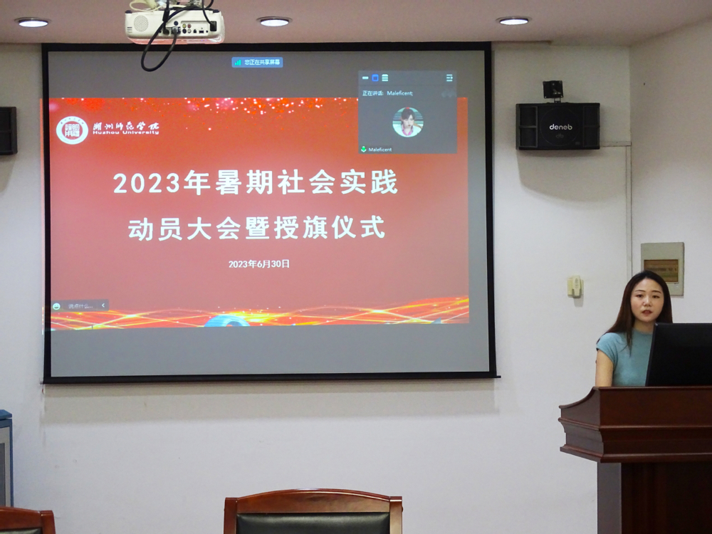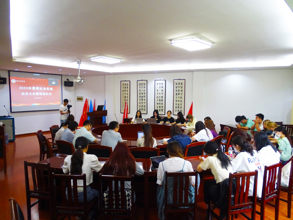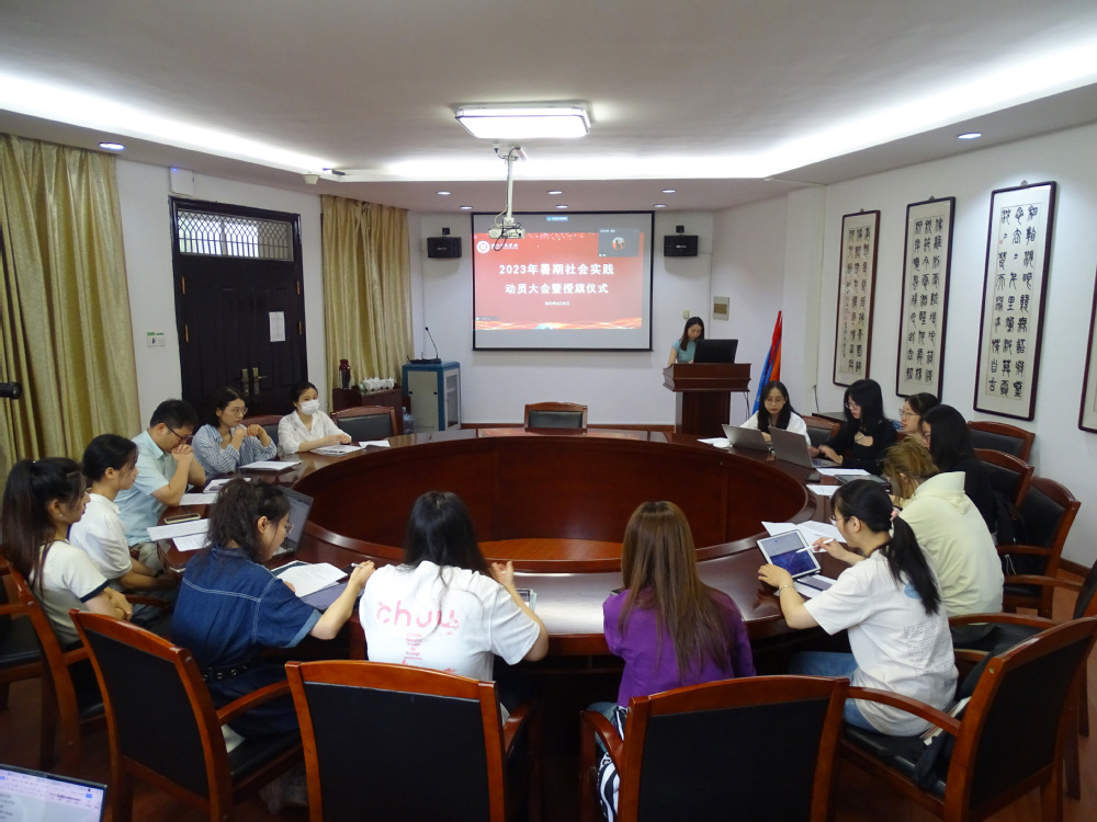 6月30日上午,我院2023年暑期社会实践动员大会于中校区11-111举行,本次动员大会主题为“学习二十大 永远跟党走 奋进新征程”。学院党委副书记朱竞、学工办全体辅导员及各暑期社会实践团队成员共同出席了本次动员大会。会议由学院团委负责人吴霜主持,分线上、线下同步进行。