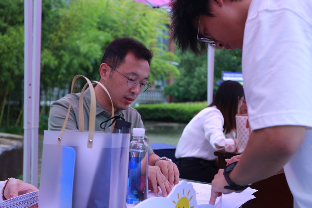 寄望未来,书签载梦。迎新现场,新生们在书签上书写“美好祝愿”,畅想充实的大学四年,一张张小小的书签,书写着期许和渴望,让“职业生涯规划”的种子在心中生根发芽。