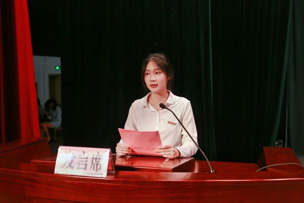 在校本科生代表——来自20200218班的林茹镘给新同学提出培养良好生活习惯、充分利用学院教育资源、提升能力与锻炼自我等三点建议。