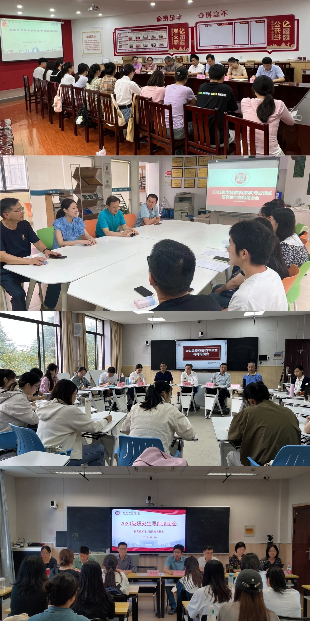 近日,我院陆续举行2023级研究生新生各专业领域的专业介绍与导师见面会。2023级教育学学硕各方向和教育硕士各领域的导师、任课教师、老生代表分别按照专业方向和领域参加了本次活动。活动由学院统一安排,各二级学位点集中组织。