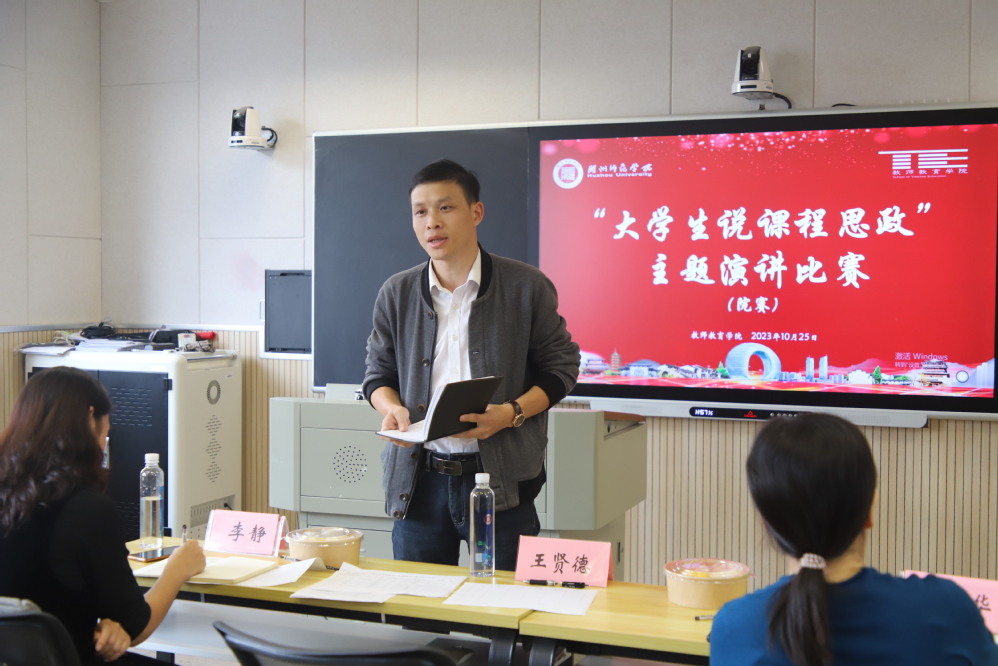 10月25日,我院“大学生说课程思政”演讲比赛院赛在10-308举行,小学教育系王贤德副教授、学前教育系李静老师、教学办主任张爱华老师担任本次比赛评委。
