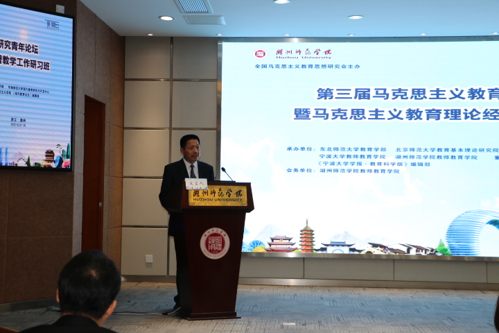 东北师范大学杨兆山教授代表全国马克思主义教育思想研究会致辞。他主要介绍马克思主义教育思想研究会和高校开设马克思主义教育理论经典论著课程教学的基本情况,特别指出马克思主义教育思想研究的重大意义以及对中国教育学科建设的重要价值,指出青年学子应继往开来、坚守传统,担负起推进中国马克思主义教育学建设的历史使命。