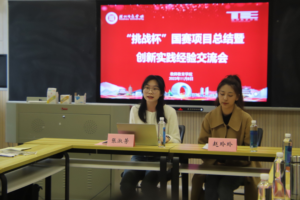 “挑战杯”国赛获奖项目负责人赵玲玲、张淑芳先后分享此次参赛经验。赵玲玲表示团队的成功离不开学校、指导老师的支持,今后将继续保持挑战杯的竞赛精神,不断寻求新的突破。张淑芳讲述了参赛过程中遇到的种种困难和挑战,以及如何通过团队合作和不断尝试找到解决问题的最佳方案,告诉大家只有通过亲身实践才能得到真感受、真成长。