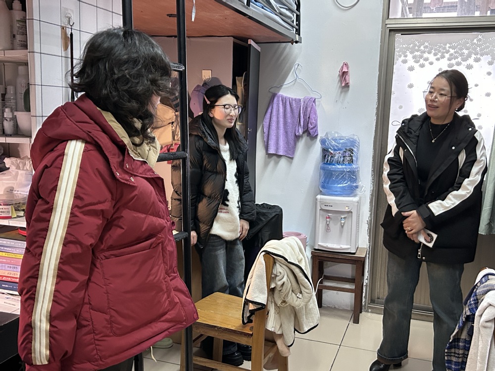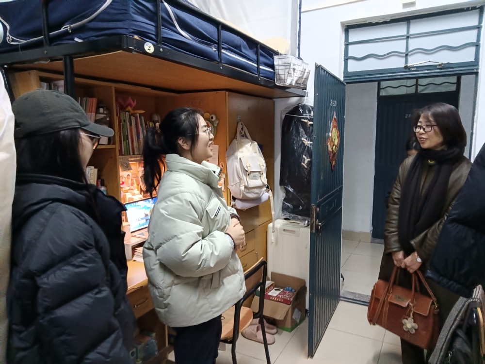 走访过程中,院领导、老师们与同学们亲切交流,询问同学们的假期学习生活和开学准备情况,仔细了解同学们的生活起居以及存在的困难,对同学们新学期的学习、生活提出了殷切的希望和鼓励。同时,老师们还重点检查了寝室卫生、防火防盗措施及用电安全等方面存在的问题,及时排除了潜在的安全隐患。