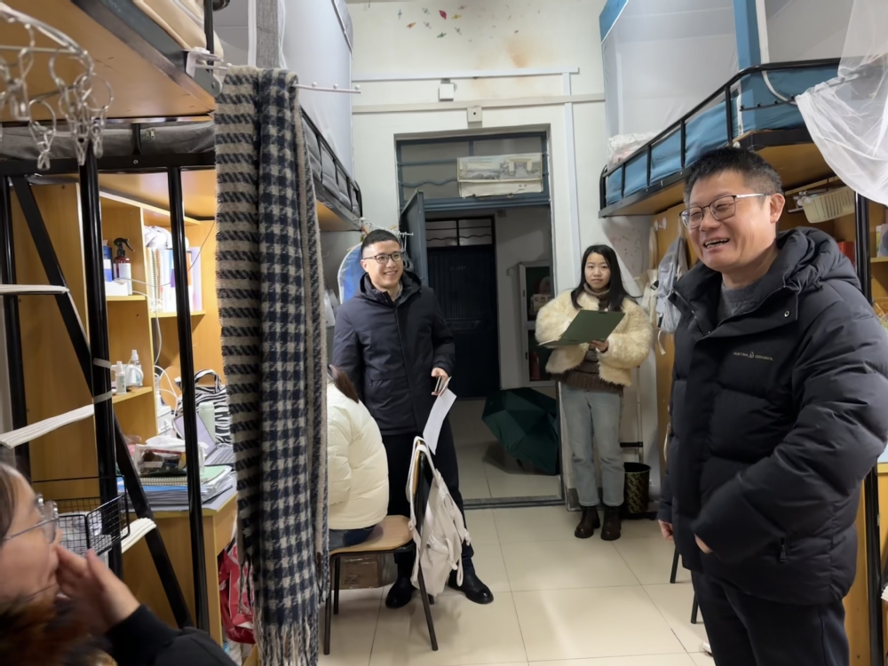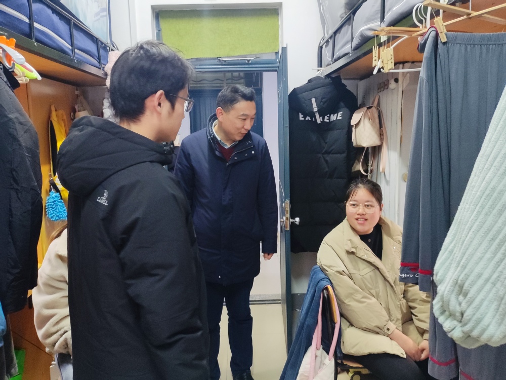 2024年3月6日下午16:00,我院党委书记沈江龙,副院长任强、李茂森、李梦霞,党委副书记沈卫,各年级辅导员前往本科和研究生学生寝室进行走访慰问,为同学们送去新学期的关怀与问候。