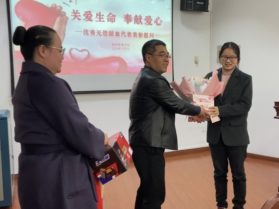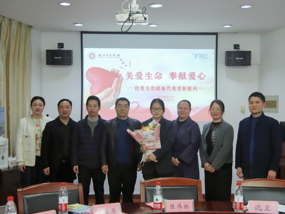 活动的最后,湖州市中心血站向优秀无偿献血代表王音同学致以诚挚的问候并献上鲜花,与会人员合影留念。一腔热血,弥足珍贵,希望更多的在校师范生都能明白肩上使命,积极奉献爱心,让热血流淌,让青春无悔。