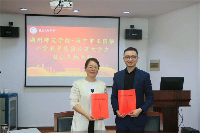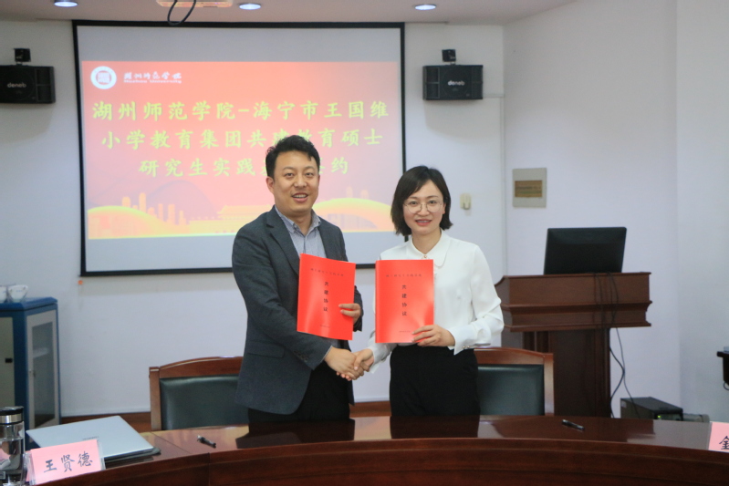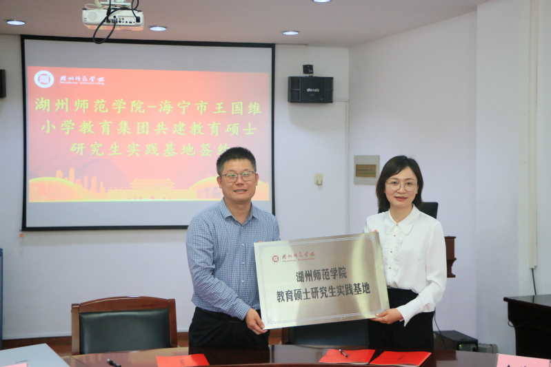 海宁市王国维小学教育集团是我院在湖州市外建立的第一个教育硕士研究生实践基地,学院将继续立足新发展阶段、贯彻新发展理念、构建新发展格局,共建教育硕士研究生实践基地、大学生就业基地后,也将围绕着这一总体目标,深入开展各项研究与合作工作,为学院和基础教育合作共赢、共同发展作出贡献。