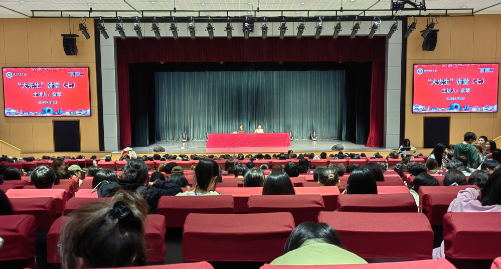 4月15日晚,js3845金沙线路“大先生”讲堂(七)在大学生活动中心开讲,邀请省教育厅教研室小学语文教研员、浙江省特级教师、余琴做客讲堂,为学院800余名研究生和本科生做题为“教师的专业修炼”的讲座。学院党委副书记沈卫主持,小教系教师和全体辅导员参加。