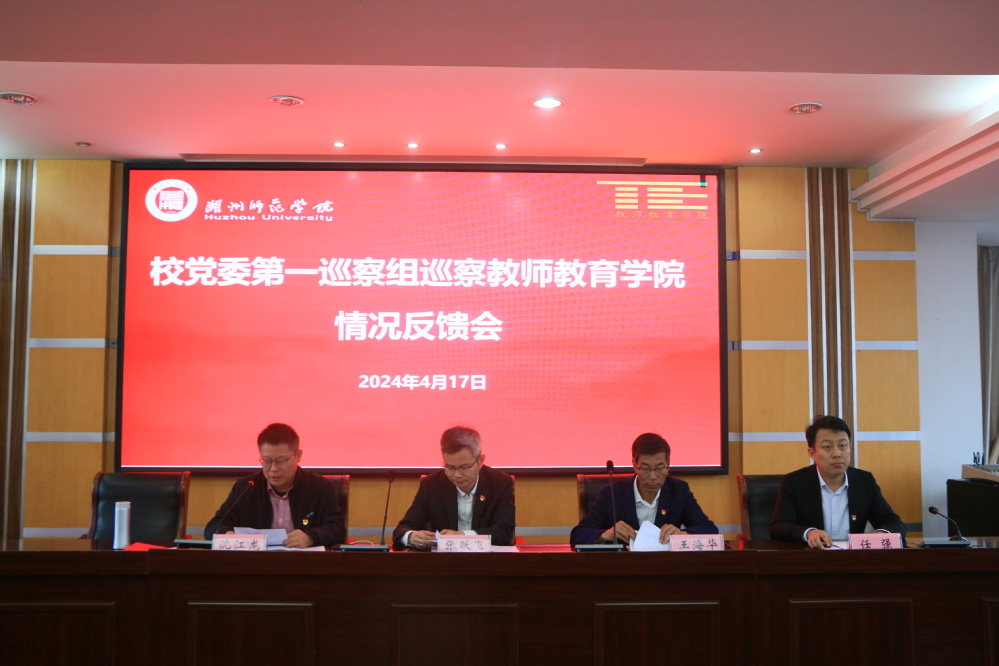 根据校党委巡察工作领导小组的部署,2024年4月17日,校党委第一巡察组向教师教育学院党委反馈巡察情况。纪检监察室、巡察工作办公室主任张跃飞、校党委第一巡察组组长王海华出席会议并讲话,学院党委书记沈江龙主持会议并作表态发言。第一巡察组成员、js3845金沙线路党政班子成员出席会议。学院内设中层、分工会主席、组织员、党支部书记、副教授以上职称人员、民主党派代表、教职工代表、学生会主席等列席会议。