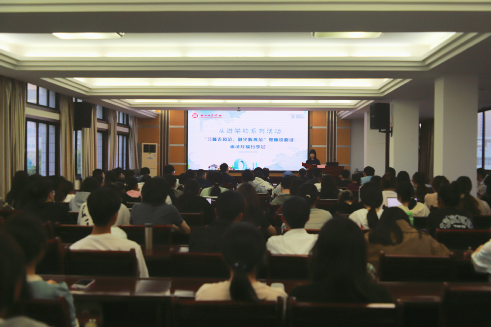 为助力在校师范生更好地备战周末的教师资格证面试,提升面试技巧与信心,5月7日晚,我院于10幢512举办了从游茶约系列活动之“习师表风范,做光辉典范”教资面试专题指导会。本次活动邀请教师资格证资深讲师、小学教育系教师罗雅萍和两位师范生技能大赛国奖获得者担任主讲嘉宾,吸引了近百名即将参加教师资格证面试的师范生前来观看。
