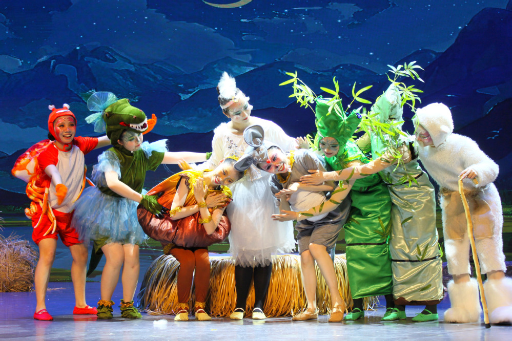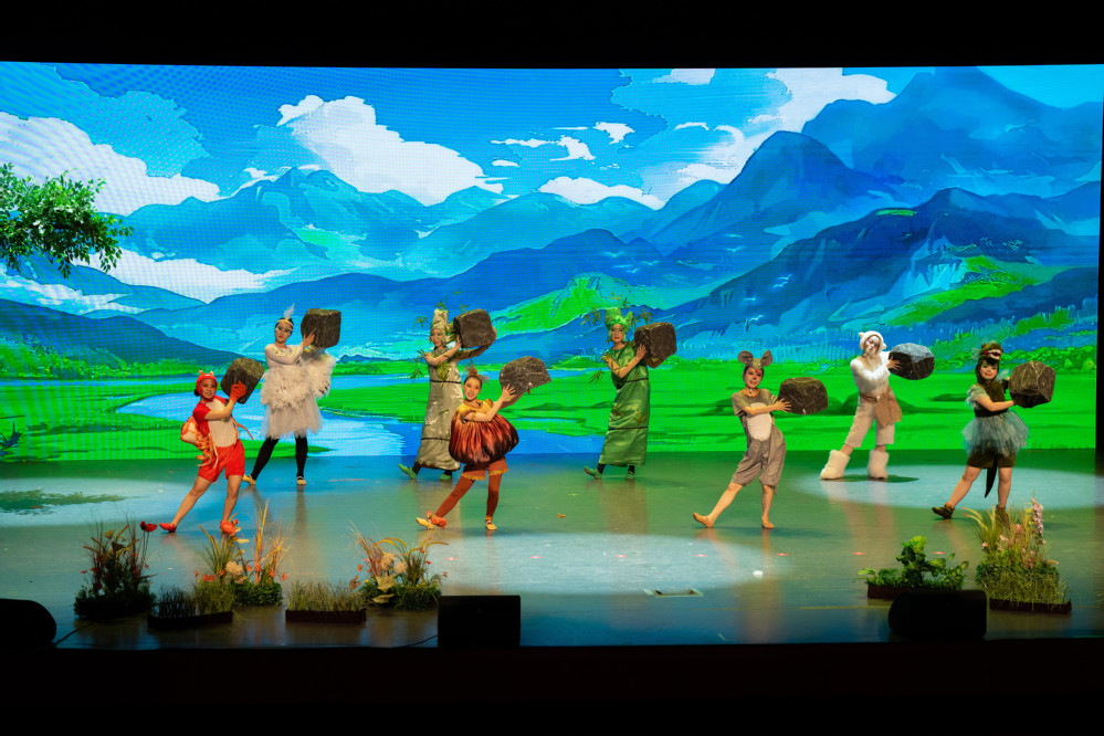 《溇港的一颗种子》主要讲述了主人公稻香香来到溇港,和当地的小动物们——湖羊爷爷、白鹭姐姐、毛脚蟹、扬子鳄妹妹、田鼠赛赛等,齐心协力与赤链蛇作斗争,利用湖州“桑基文化”的智慧,共同打造适合水稻生长环境的故事。该剧以儿童视角打开湖州故事,引导小朋友们体验不同的人物情感,促进其情感认知的成熟,配合着绚丽多姿的舞蹈编排、璀璨夺目的灯光秀以及演员们深情投入的演绎,为现场观众们呈现了一场精彩绝伦的视听盛宴。