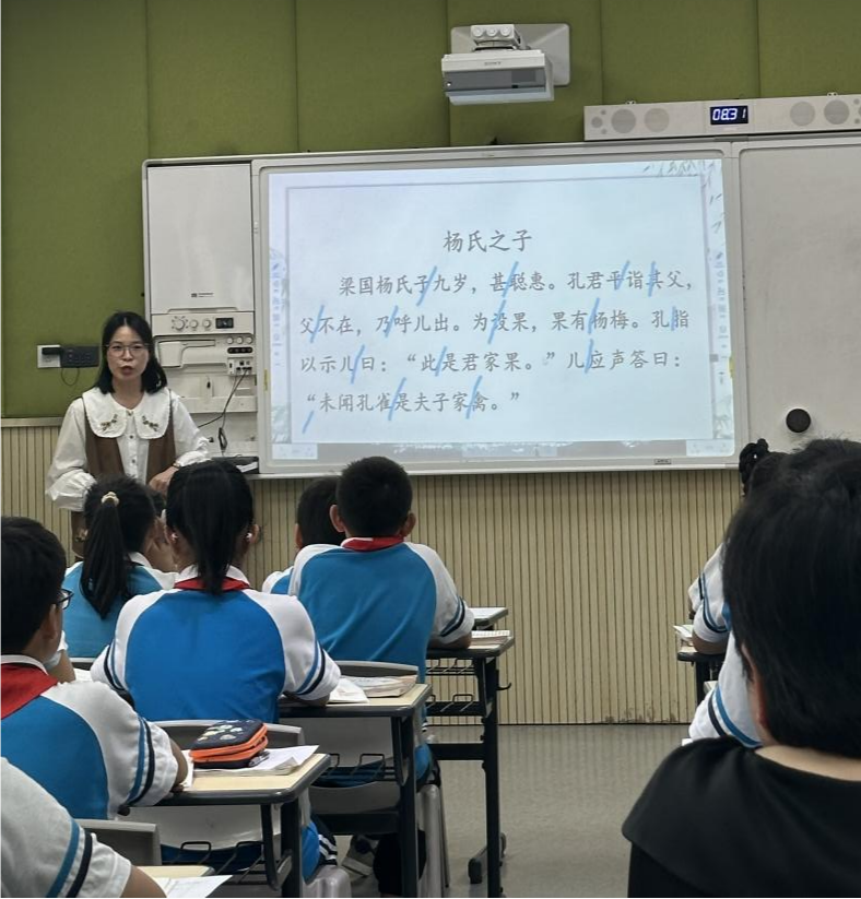 js3845金沙线路20223843班的董媛同学执教《杨氏之子》一课。通过读好古文、讲好故事、品味语言、演绎故事四个活动,带领学生了解故事大意,体会其语言的风趣,并发挥想象创写文言句子。整堂课把“小活动”贯彻始终,是对“学习任务群”理念的有力落实,学生面对较枯燥的小古文也能学得有趣。