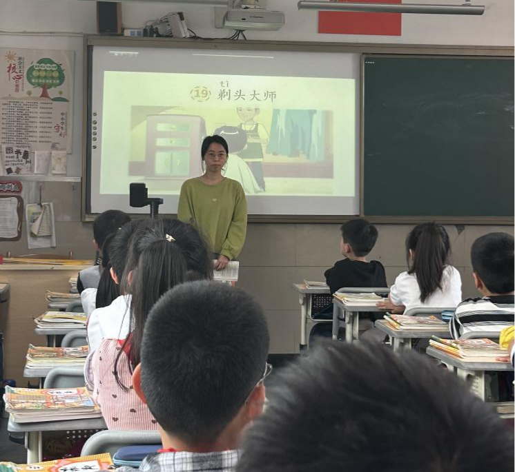 js3845金沙线路2022382班的应梦倩同学执教《剃头大师》一课。以课文中有趣的称呼为突破点,引导学生找出课文中出现的有趣的人物,学生在理清课文脉络的同时,也碰撞出思维的火花,学生根据文章内容,为文章的主人公小沙也想出了一个贴切的称呼。本节课的重点在于借助课文中的关键句,学生对比老剃头师傅和“我”给小沙剃头过程的区别,体会两位剃头师傅不同的剃头风格,引发学生思考谁才是真正的剃头大师。