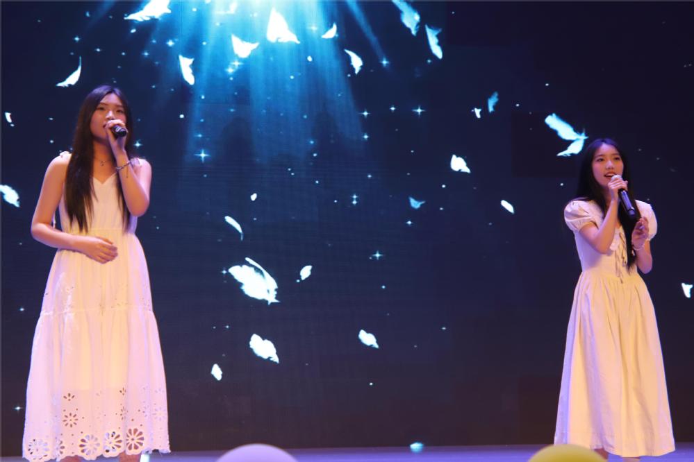 典礼后为学院毕业生晚会。颜梦琪和郑思彤两位同学携手走上舞台,一首深情款款的《阿楚姑娘》为晚会揭开了序幕,歌声婉转悠扬,仿佛穿越了时空,将观众们带入了一个充满回忆与感动的世界。紧接着,独唱《岁月神偷》登场,美妙的歌声如泉水般清澈,伴随滚动播放的一张张照片,带着淡淡的忧伤,勾起了大家对于美好校园时光的无限回忆。随后,街舞串烧《Starry pop girl》将现场气氛推向了高潮。他们青春洋溢的舞姿、动感十足的旋律,展示了青春的活力与激情。