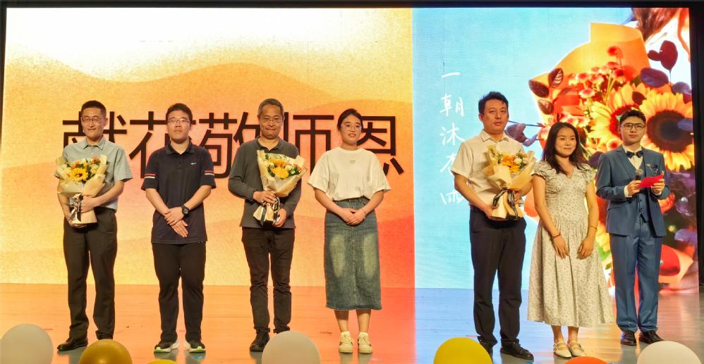 在今晚的特别环节——献花敬师恩中,一束束献花代表对老师的敬意与留念。俞睿玮老师向所有的学生表达了衷心的祝福,鼓励所有毕业生保持乐观的心态面对困难,追逐梦想,达到人生巅峰。李长伟老师表示,毕业是新的开始,祝福所有人健康、平安、喜乐,他强调人是意志的存在,人是可能性的存在。