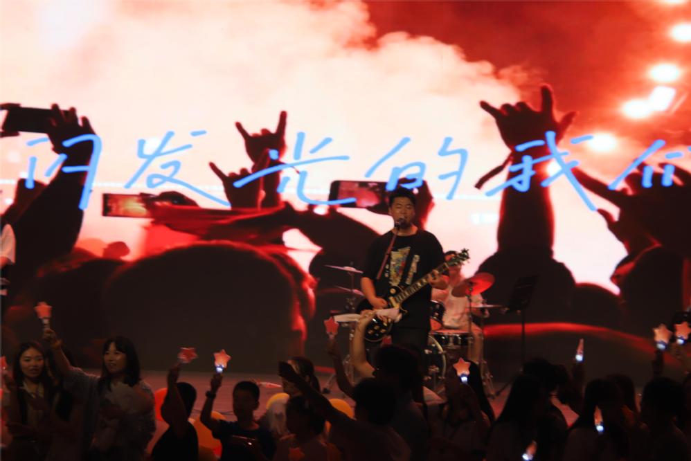 来自20200219班樊泓谊的临别赠言开启了“循光远航”这一篇章。丛林派对乐队的《活着》《回不去的夏天》表演震撼登场,激昂的旋律、律动的节奏和金属乐队碰撞的声音瞬间点燃了现场气氛,他们精彩的演出,充满了力量与激情,赢得了观众们阵阵热烈的欢呼。毕业班辅导员吴霜、李硕两位老师携手丛林派对《带我去找夜生活》惊喜亮相,随着音乐的高潮迭起,观众们仿佛被带入了一个充满活力的音乐世界。