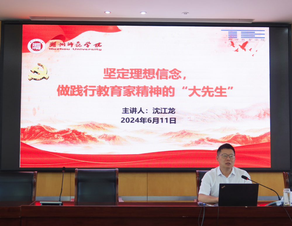 活动伊始,沈江龙书记以《坚定理想信念,做践行教育家精神的大先生》为题作最后一次党课。他带领大家回顾了党的二十大报告及其精神,强调了坚定理想信念在新时代的重要意义,并结合师风师德建设,深刻阐释了师范生应如何践行教育家精神。他强调,各位毕业生党员要坚持不懈用习近平新时代中国特色社会主义思想武装头脑、指导实践,在新的人生征途上坚守初心,勇担使命,以饱满的青春热情、良好的精神风貌争做新时代的“大先生”。