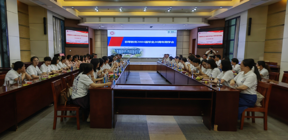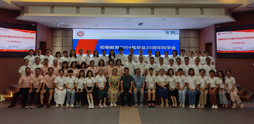 8月17日下午,学院举行初等教育2004届校友毕业20周年返校活动。在明达楼126会议室,初等教育专业2004届60余名校友们齐聚一堂,抚今追昔,忆峥嵘岁月,共叙母校情、同窗谊。学院党委书记沈江龙,副书记沈卫参加校友返校活动。本次活动特邀艺术学院党委书记章晓强(曾任教育科学与技术学院党委副书记)参加。
