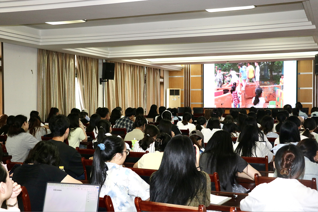 9月21日,js3845金沙线路学前教育系荣幸地邀请了安吉特级教师章洁老师,开展了一场以《安吉游戏课程的实践与思考》为主题的专题讲座。章洁老师不仅是安吉游戏课程的推动者之一,也是我国教育家精神的实践者和传播者。此次讲座吸引了学前教育系的多名教师及80余名本科生和研究生参加。