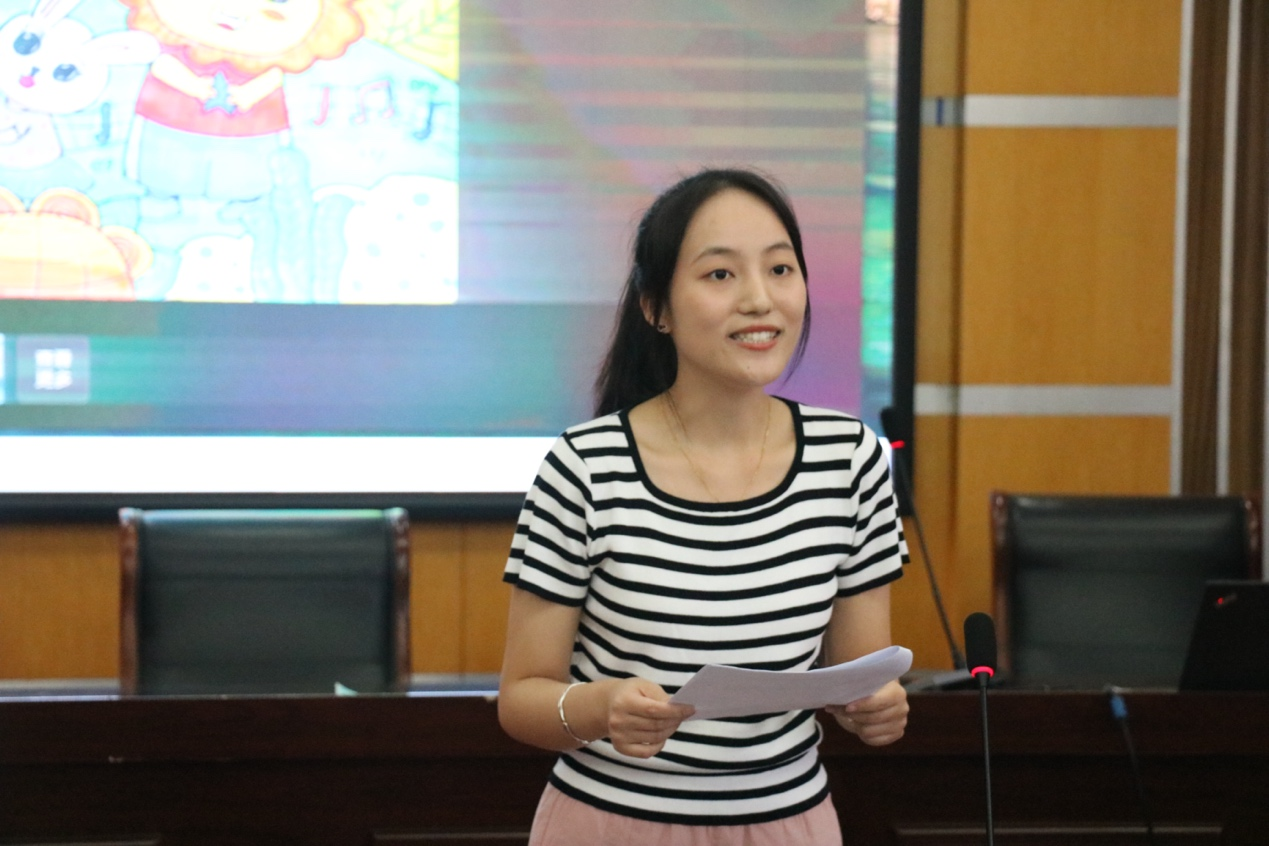 在互动展示环节,大三学生周迎和大二学生王飞翔分别就《梨子小提琴》的故事讲述及配图、《蛋宝宝找妈妈》的说课演示进行了展示。费新霞老师以教育家精神中的精细化要求为基准,对两位学生的表现进行了详细点评。她指出,绘画作品要突出角色细节,故事讲述要设计合理的动作,增强表达的生动性。这不仅是技能的传授,更是一种追求细节与精准的态度,体现了教育家精神的内涵。