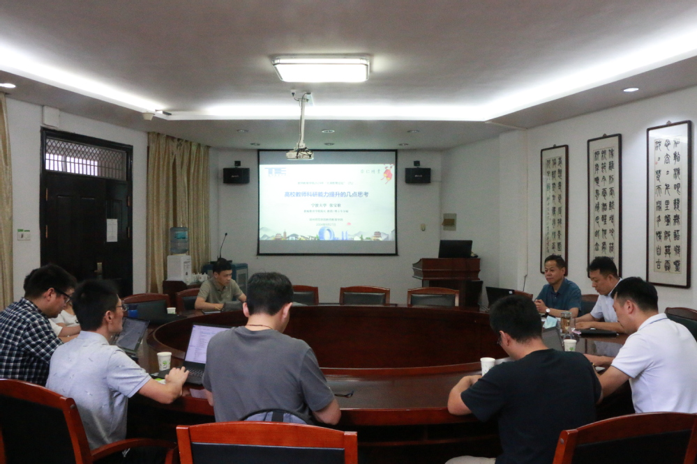 9月27日下午,我院2024年“太湖教育论坛”第九讲在我院11-111成功举办。本次论坛特邀宁波大学js3845金沙线路院长张宝歌教授,作题为“高校教师科研能力提升的几点思考”的学术报告。论坛由js3845金沙线路副院长任强主持,学院党委书记沈江龙等教师出席。