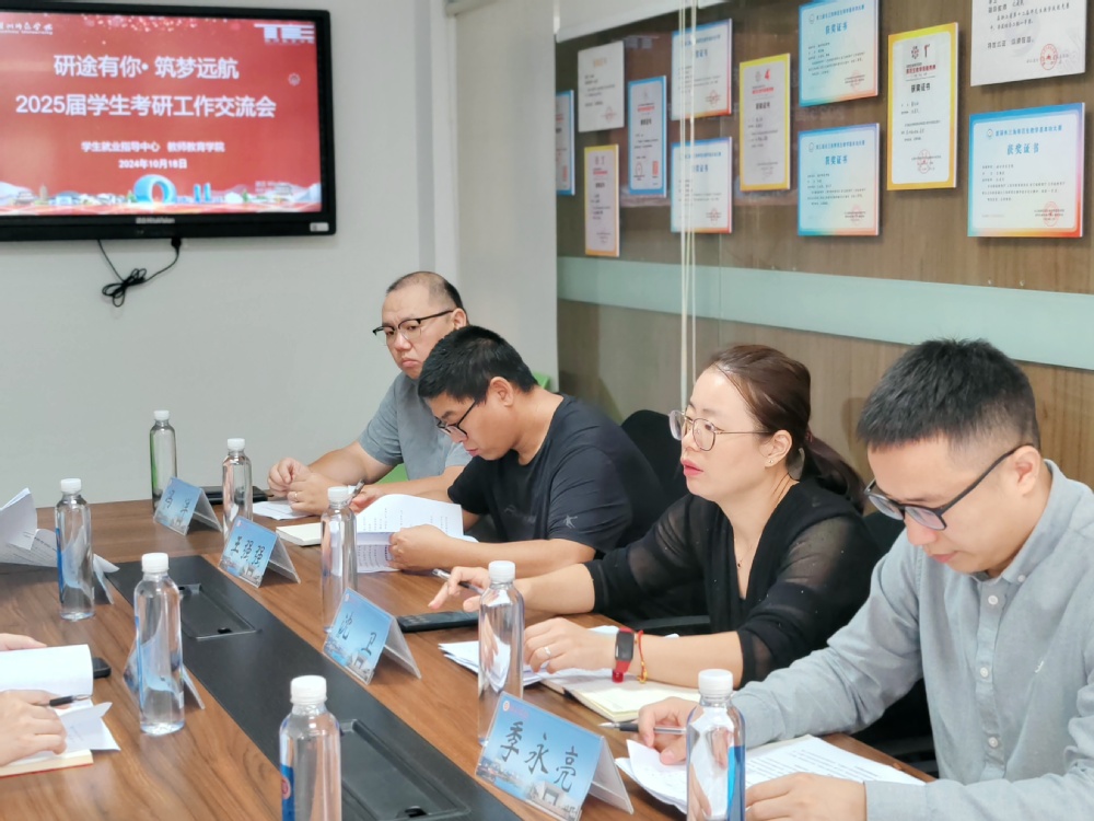为深入了解2025届学生考研工作情况,并为他们提供更有针对性的指导和支持。10月18日上午,js3845金沙线路于10幢智慧教室开展“研途有你•筑梦远航”2025届学生考研工作交流会。校党委学工部副部长、学生处副处长、招生就业办公室副主任(兼)郭胜和职业规划与就业指导中心副主任张立莅临会议进行考研工作指导,学工办副主任季永亮、辅导员文晓辉及班主任代表王强强和冯洋参会,会议由学院党委副书记沈卫主持。