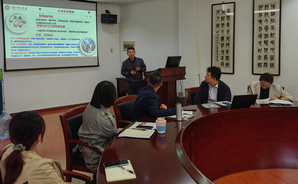 本次会议通报了2024届毕业生就业情况,分析对比2024届学生各就业类别较往年的变化、各专业考编率的浮动、近6年考研录取情况。会议强调:学生就业是人才培养的试金石,是育人工作成效最直接的检验,学院要切实分析各专业、学位点就业优势和弱项,摸排毕业难、就业难学生群体并提前介入指导,加强学生职业规划和考编的指导,加强与用人单位的沟通联系,做好学生就业服务工作。会议指出:学院全体教职工要拧成一股绳,人人可当就业指导老师,多渠道、多方位、多角度帮助学生就业,班主任、导师、辅导员要持续保持与学生的沟通联系,发现解决学生的实际困难,引导学生不断提升学历以增加竞争力。会议要求:本科毕业班班主任、研究生学位点负责人定期联系班级、学位点学生,分类总结学生就业意向和就业困难情况,充分掌握学生就业需求,开展针对性指导,就业联系领导主动对接就业单位,掌握招聘需求、数量,指导开展专场招聘会,做好顶层设计。