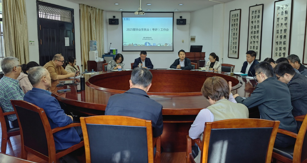 10月23日下午,学院在11-111会议室召开2025届毕业生就业和考研工作会议,专题研究学院2025届毕业生就业和考研指导工作,布置下一阶段就业安排。学院党政领导班子成员,各系部主任,毕业班班主任,研究生学位点负责人,年级辅导员参加本次会议,会议由学院党委副书记沈卫主持。