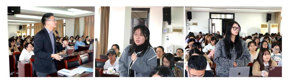 讲座最后,教师王超和学生毛陈飞、林欣怡就本次讲座内容表达了自己的疑惑。连教授耐心解答并指出,我们一定要关注人工智能对教育的影响,利用人工智能更好地进行教与学,教师在教学中也应注重教学反思以不断提高自身教学水平。