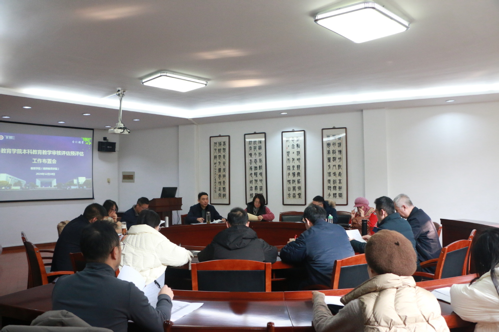 12月18日下午,我院在11幢111会议室召开教育学院本科教育教学审核评估预评估工作布置会。学院领导班子成员,各系系主任,各职能部门负责人,本科教学督导主任,教学办全体成员参加本次会议,会议由学院执行院长李茂森主持。本次会议主要围绕《我院2024年本科教育教学审核评估预评估工作方案》以及《关于做好本科教育教学审核评估预评估工作的通知》进行解读,并对该项工作做了详细布置。