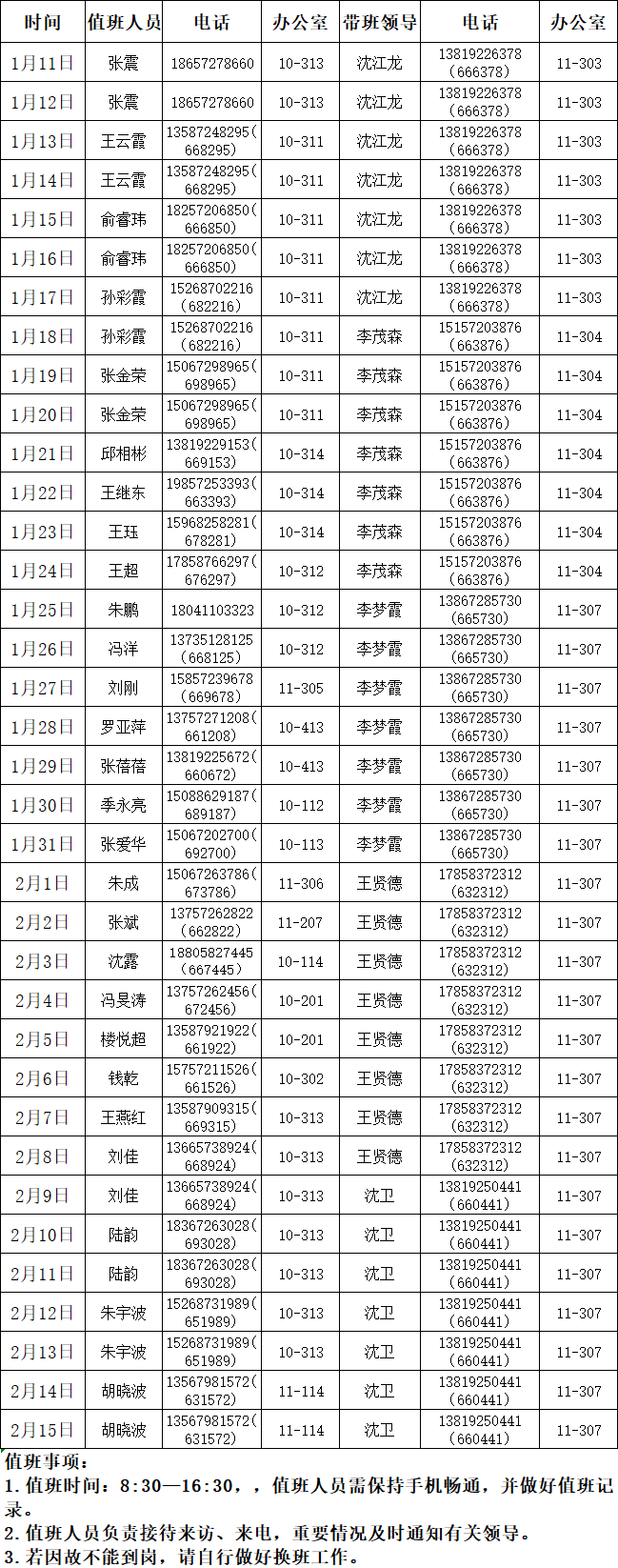 教育学院(js3845金沙线路)2025年寒假值班安排表 (1月11日-2月15日)