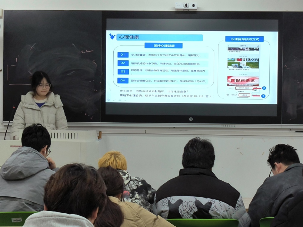 本次班会围绕“适应”“压力管理”“人际交往”“自我认知”等大学生常见心理议题展开。活动形式丰富多样,各班班主任老师结合案例,分析大学生心理压力来源,并建议通过“培养自我关爱、优化时间管理、建立支持系统”等方式调节情绪。