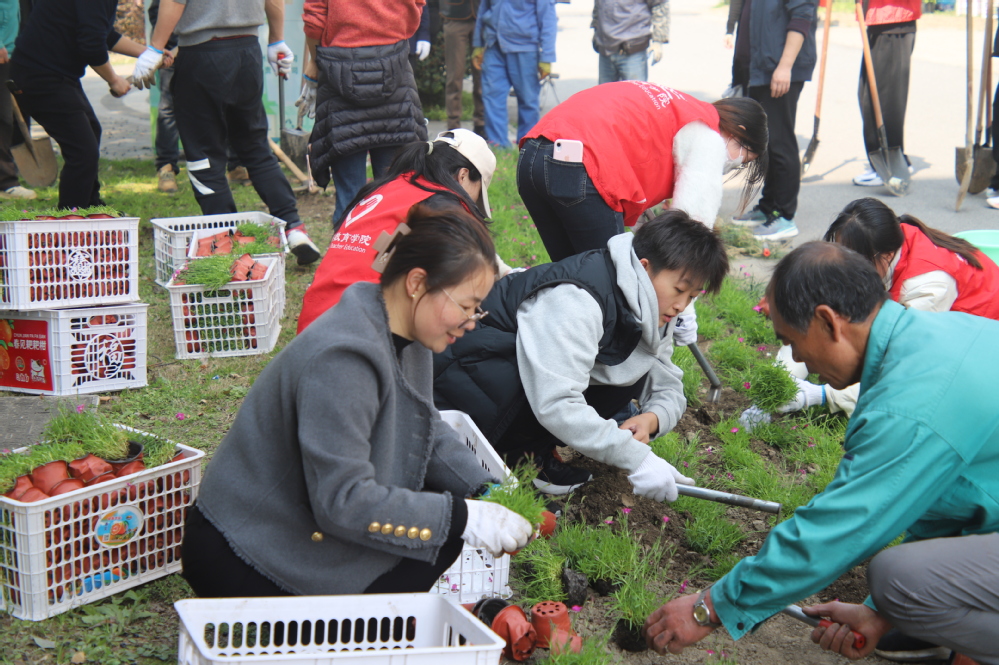 为了培养在校学生的劳动实践技能,引领师生树立环保意识,在第47个植树节到来之际,我院联合学校后勤服务中心于3月11日下午在东校区长兴广场以“手植春光,绿满湖师”为主题组织师生开展植树活动,以集体植树为载体,以劳动思政为指引,为建设绿色校园贡献青春力量。