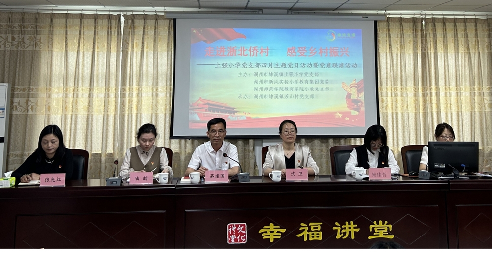 4月17日下午,教育学院小学教育学系教工党支部赴湖州市埭溪镇芳山村,与湖州市埭溪镇上强小学党支部、湖州市新风实验小学教育集团党委湖州市埭溪镇芳山村党支部联合开展“走进浙北侨村·感受乡村振兴”主题党日活动。教育学院党委副书记沈卫、小教系教工党支部书记陆韵和副书记沈茜参加本次活动。