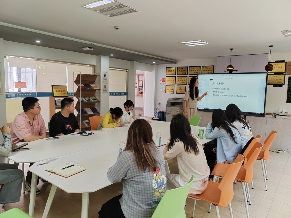 分享会伊始,学院辅导员文晓辉进行开场介绍。他指出,近年来教育学院考研率与留学申请成功率逐年攀升,2025届毕业生中已有22人被国内高校录取,7人收到国(境)外QS100院校录取通知书,此次分享会旨在通过朋辈互助的形式,让下一届考研学生近距离汲取成功经验。随后,活动进入经验分享环节,考研上岸学生围绕“院校专业选择策略”“公共课与专业课备考时间规划”“复试面试应答技巧” 等核心问题依次展开分享。现场设置的问答互动环节将气氛推向高潮,学生们就“专业课复习如何更高效”“备考与实习存在时间冲突如何协调”等问题踊跃提问,分享嘉宾结合自身经历逐一细致解答,现场不时响起热烈掌声。参会学生表示通过此次分享会“明确了升学目标”“坚定了考研决心”“掌握了有效备考方法”。