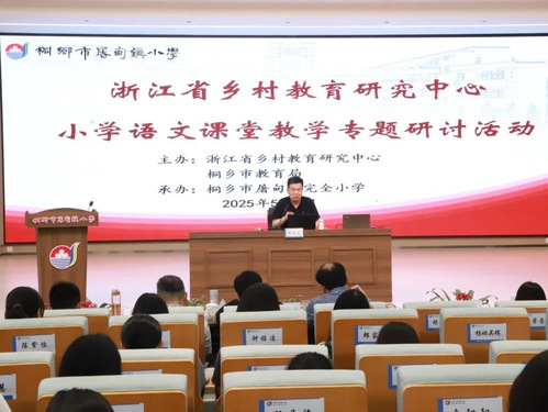 为发挥名特优教师引领作用,助推小学语文课堂教学改革,助力乡村教育发展,浙江省乡村教育研究中心与桐乡市教育局联合举办“浙江省乡村教育研究中心小学语文课堂教学专题研讨活动”,5月9日在桐乡市屠甸镇完全小学顺利举行。中国教育学会小学语文教学专业委员会理事长、人民教育出版社编审、统编小学语文教材主编、js3845金沙线路教育学院特聘教授陈先云,浙江省乡村教育研究中心副主任、js3845金沙线路张光陆教授,秦启光博士,浙江省特级教师、嘉兴教育学院小学语文教研员刘晶,桐乡市小学语文教研员葛永藤以及桐乡市各小学语文骨干教师代表50余人参加了本次活动。