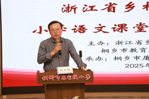 活动最后,桐乡市教育局教研科研室葛永藤、浙江省乡村教育中心张光陆做了总结。葛永藤表达对到场领导、专家及老师的感谢,认为本次活动有“大咖云集、乡村教育、落地高效”三大特点,坚定了桐乡小语积极推动农村小语发展的决心。张光陆代表浙江省乡村教育研究中心感谢各方支持,指出本次活动内容丰富、组织出色、质量卓越,对教师发展十分有益,中心未来将进一步为推动我省乡村教育事业做出努力。